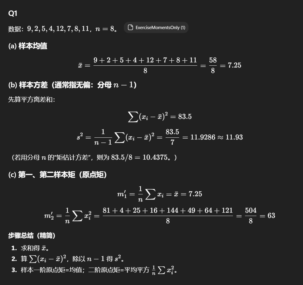 - 期望(E(X)):全称为 Expectation,是随机变量取值的加权平均,权重为对应取值的概率(或概率密度),反映随机变量取值的 “中心趋势”,即 1 阶矩。