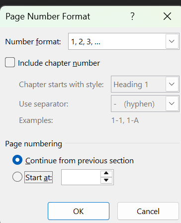 双击页码进入Header and Footer模式,RMC乱的页码,进入 Format Page number,如上图,默认已选中Continue From previous section,点击OK即可
